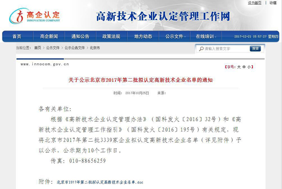 近日,國(guó)家高新技術(shù)企業(yè)認(rèn)定管理工作網(wǎng)發(fā)布了《關(guān)于公示豐臺(tái)園2017年第二批擬認(rèn)定高新技術(shù)企業(yè)名單的通知》,北京中科宇杰節(jié)電設(shè)備有限公司通過(guò)認(rèn)證,榮獲“國(guó)家高新技術(shù)企業(yè)”的殊榮。