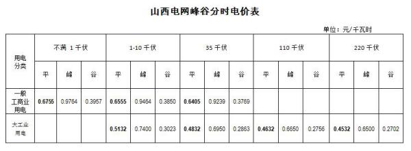 山西電網峰谷分時電價表