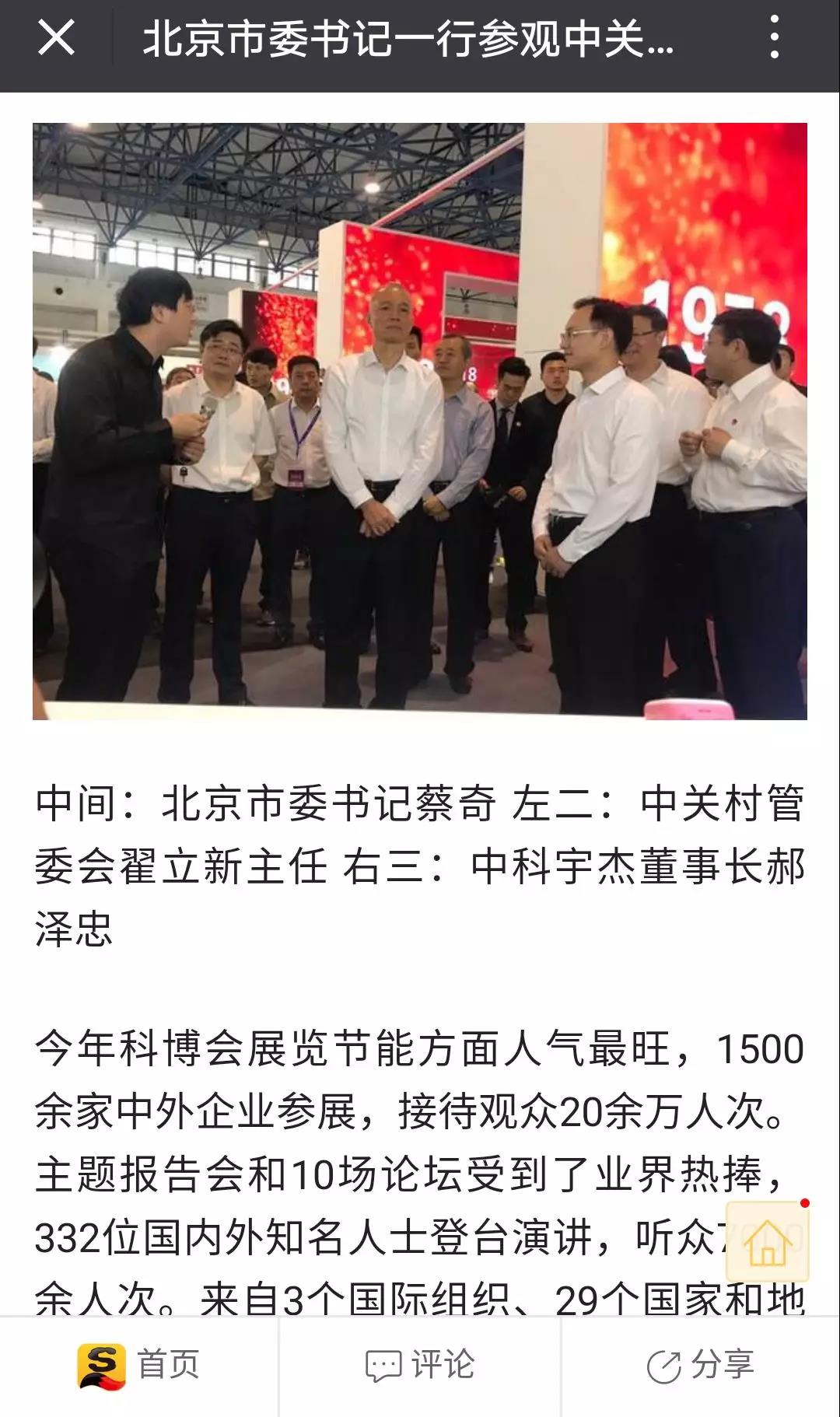 厲害了!中科節電技術在科博會上備受北京領導關注,引搜狐新聞報道!