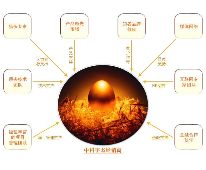 中科宇杰憑著多年的行業(yè)運作積累和500多個節(jié)能項目管理經(jīng)驗,結合節(jié)能行業(yè)的現(xiàn)狀,創(chuàng)造性地提出“節(jié)能商學院”式的渠道發(fā)展政策,綜合性地為全國有志于投身節(jié)能事業(yè)的企業(yè)、人士提供一個節(jié)能行業(yè)企業(yè)的“孵化器”平臺。此平臺不但在渠道的政策方面,給予經(jīng)銷商靈活的操作方式,充分發(fā)揮不同類型經(jīng)銷商的優(yōu)勢和長處,還為經(jīng)銷商提供行業(yè)資訊、技術培訓、商務操作、投融資、人力資源、客戶資源、互聯(lián)網(wǎng)支持等方面給予強有力的支持,讓你的投資不但有經(jīng)濟收益,還能在企業(yè)經(jīng)營方面得到諸多的收益。中科宇杰不但自己做大做強,也幫助我們的合作者成長,共同成為節(jié)能行業(yè)的翹楚。