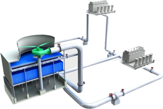 水輪機取代傳統冷卻塔中的電機、連軸節、減速機、達到節電效果
